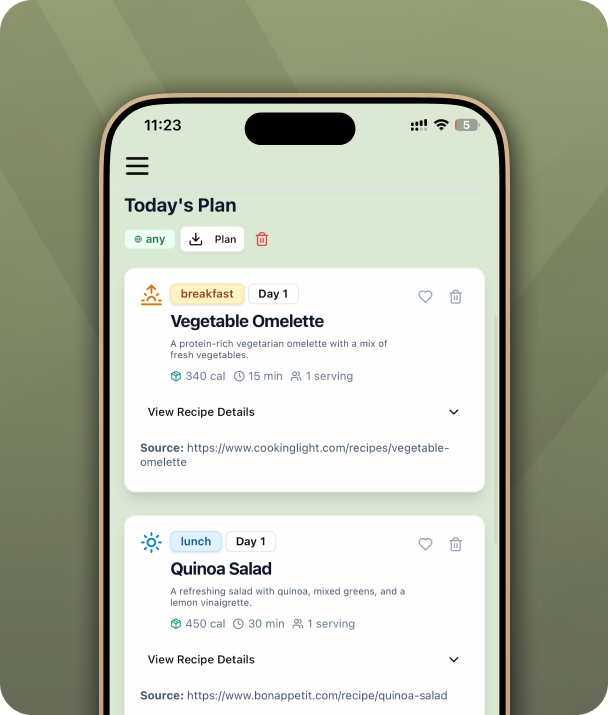 Plan nutritious, balanced meals that align with your preferences, goals, and daily routine.